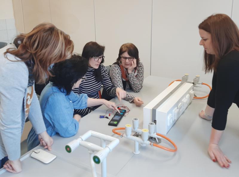 Ezt követően a gimnázium biolaborjában ismerkedhettek a naplopás örömeivel (sörkollektorbemutató) és a NeuLog adatgyűjtők segítségével mérhették meg a szélkerékmodellek szolgáltatta feszültség és áramerősség értékeket.