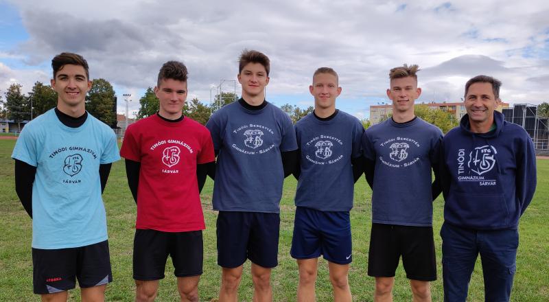 Szintén a dobogó legfelső fokára állhatott a Tinódi Gimnázium fiú távolugró csapata. Az 564 méteres átlagteljesítmény nem csak az aranyéremhez volt elég, hanem az országban induló 90 csapat közül az 5. legjobb eredmény lett. Így a fiatalok utazhatnak az október 13-án Kecskeméten megrendezendő országos döntőre.