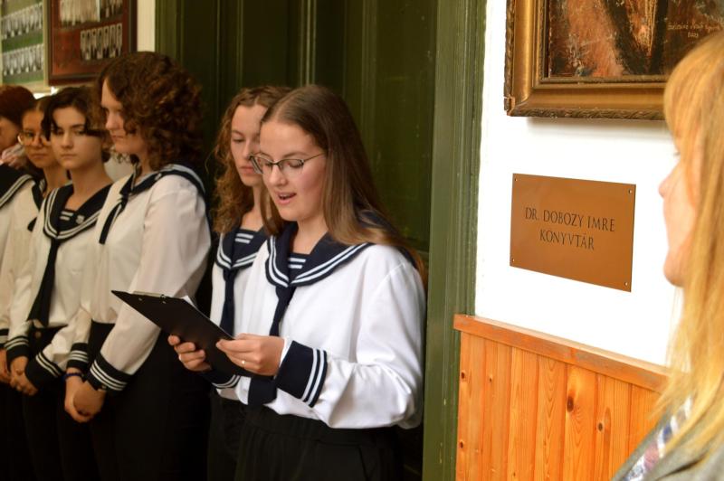 2024. június 13-án egy bensőséges ünnepség keretében, egykori tanítványai, barátai, nyugdíjas és jelenlegi pedagógusaink körében neveztük el az iskola könyvtárát Dr. Dobozy Imre egykori kollégánkról. Nem véletlen, hogy ezt a termet választottuk, hiszen a történelem-filozófia szakos pedagógus egyik kedvenc elfoglaltsága, mondhatjuk, szenvedélye volt az olvasás.