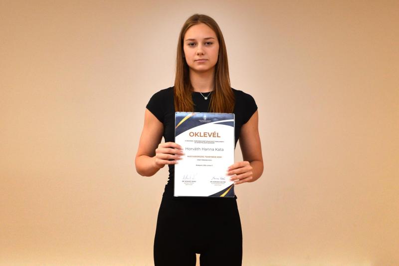 A 2022/2023. tanévben elért kimagasló tanulmányi és sportteljesítményéért Horváth Hanna Kata Magyarország tehetsége 2023 címet érdemelte ki.