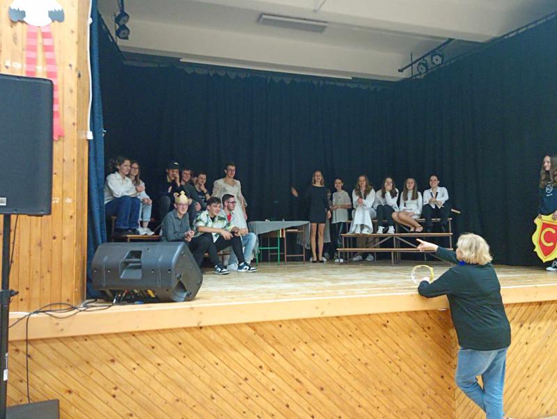 A dísztermi előadásra osztályfőnökünk, Rita néni még nézőket is hozott, így lett igazi premier a projektzáróból.
