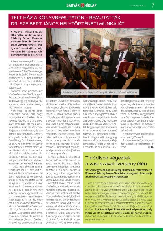 Vas vármegye általános és középiskolásainak részvételével a Körmendi Kölcsey Ferenc Gimnázium a magyar kultúra napja alkalmából 2024. január 22-én szavalóversenyt rendezett. Iskolánk diákjai, Pintér Kitti 9.A osztályos tanuló 1., míg Pintér Lili 10.A osztályos tanuló 2. helyezett lett.