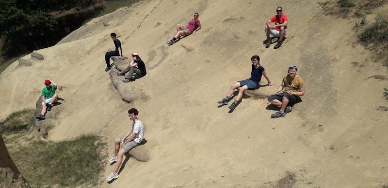 Délután Mátraszentimrén keresztül gyalogoltunk tovább a csúcs irányába. A hőséget a Mátragerinc bükkfáinak árnyéka és a hegyen átbukó szél enyhítette. A Galya-tetőre kora este értünk fel. A kilátóról lenyűgöző panoráma nyílt: messzire láttuk a Bükk, Mátra csúcsait, sőt a tiszta idő miatt a Tátra körvonalai is felsejlettek a horizonton. Estére Mátraalmásra értünk, ahol a falu szélén egy eldugott pihenőhelynél töltöttük az éjszakát. Másnap reggel busszal lementünk Nemtibe, ahol – nem jelezett úton – egy rövidebb, de látványos körtúra várt ránk. Elsőként a Morgó-gödör szurdokba ereszkedtünk le, amely a nyári zöldben még vadregényesebbnek tűnt. A túrán a Leány-kő természetes kőmonolitja következett, majd a Bánya-kő kilátója, végül pedig a padosan lerakódó homokkőből álló, különleges formájú Sárkány-szikla zárta utunkat. Innen busszal és vonattal jutottunk vissza Sárvárra. Magyarország legmagasabb helységében tett kirándulás tökéletes negyvenedik szülinapot hozott a tinódis túlélő túrák történetében!