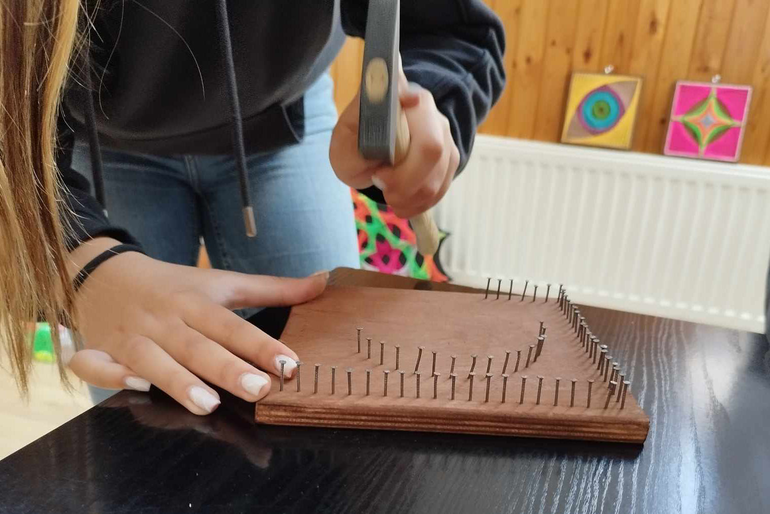 Szeptember 19-én délelőtt iskolánkba látogatott Tóth András, aki string art technikával alkot, azaz fonalképeket készít. Munkái már kisebb-nagyobb fesztiválokon is megjelentek, leginkább természethez közeli mintákat formáznak, geometriával ábrázolva. A 10.A osztályból 8 tanulónak volt lehetősége kipróbálni a fonalkészítés élményét, melyben tudatosság és végtelen lehetőség rejtőzik. Fantasztikus alkotások születtek és szuper élményekkel gazdagodtak a diákok.