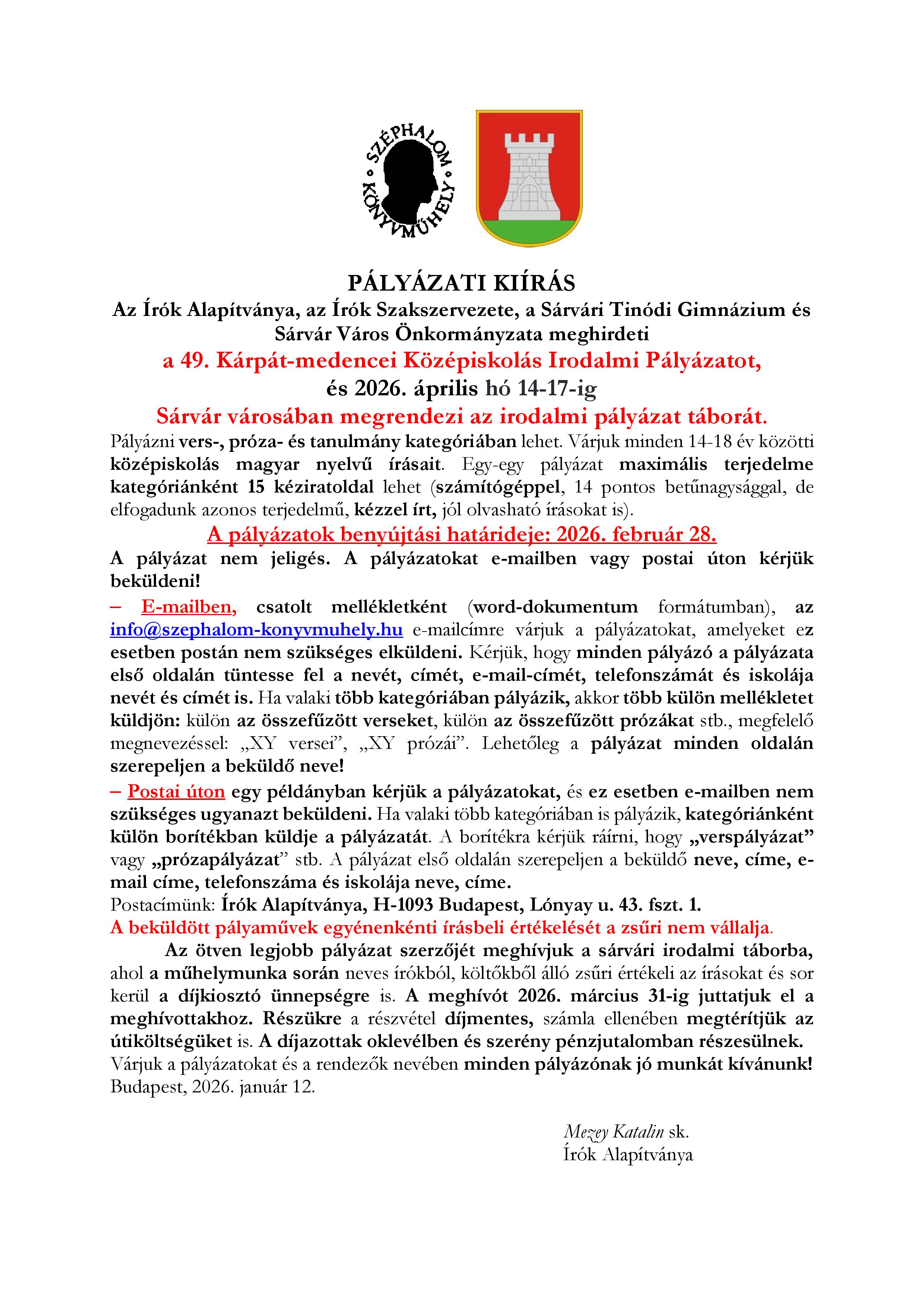 49. Kárpát-medencei Középiskolás Irodalmi Pályázat és Tábor