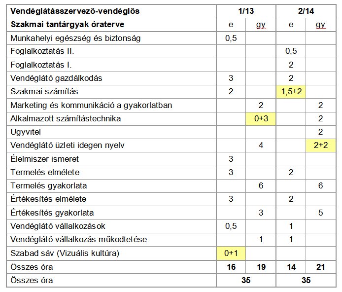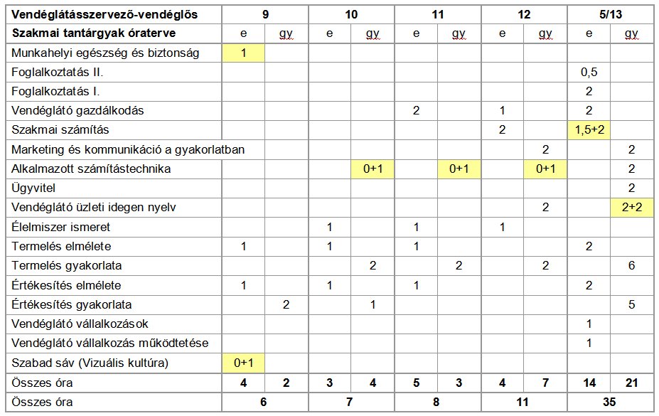 Cukrász Pincér Szakács Turisztikai szervező, értékesítő 9-13 13-14 Vendéglátásszervező-vendéglős 9-13 13-14 (Frissítve: 2013.05.28 16.30) 2013. április 19.