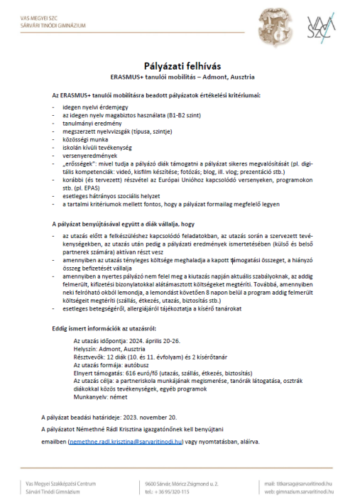 Erasmus+ Tanulói mobilitás az ausztriai Admontban