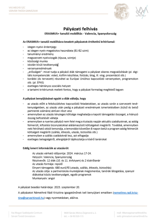 Erasmus+ mobilitások a Sárvári Tinódi Gimnáziumban