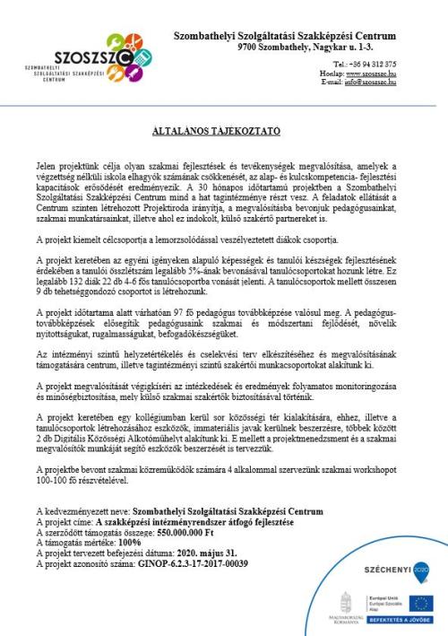 GINOP-6.2.3-17-2017-00039 <BR>A szakképzési intézményrendszer átfogó fejlesztése