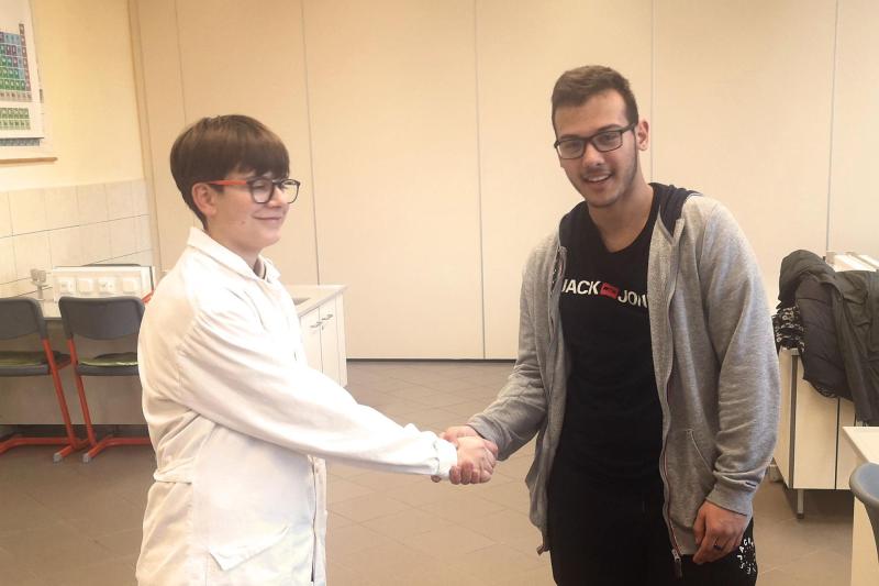 Körvonalazódik egy ígéretes kapcsolat a 11. természettudományi fakultáció és a szerda délutáni Selye laboros kis kutatók között. Február 5-én Takács Márk képviselte faktosainkat, aki elmondta a kisdiákoknak, hogyan tudnának segíteni egy jószolgálati tevékenység keretében a megfigyelések disszeminációjában. Márkék már gyakorlottak a támogatásban, hiszen a Science Fair kaposvári rendezvényén az ajándékdoboz, a dioráma, a szórólapkészítésben is remekeltek. Az ünnepélyes kézfogás után megismerkedtek egymással a partnerek, majd egy közösségi platformon csoportot hoztak létre a zökkenőmentes kommunikáció érdekében. Csak így tovább!