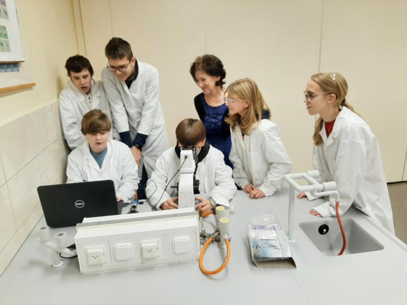 December 11-én szerdán vendégül láttuk a szakkörösökkel Töreki Ildikó tanárnőt, a Nádasdy Tamás Általános iskolából, aki megnézte kutatásainkat (mikroműanyag frakció vizeinkben – ennek eltávolítási lehetőségei, mézga, azaz a macskaméz sebkezelési lehetőségei), tanácsokat adott, és jóízűen elfogyasztotta a kínált teát és süteményt. Remek ötleteket adott a továbblépéshez: a mikroműanyag frakciót a forralás után visszamaradó vízkőrétegben is vizsgálhatnánk...